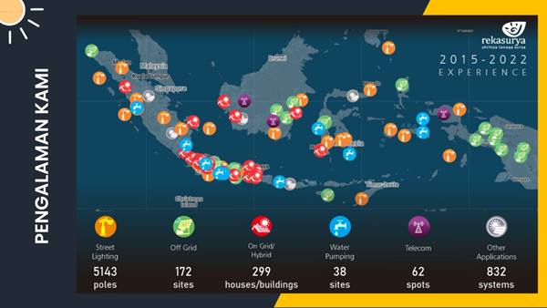 Rekasurya memiliki profesionalisme yang tidak perlu diragukan dalam bidang PLTS, dibuktikan dengan pengalaman kami dalam mensupport pekerjaan PLTS . Terhitung RATUSAN SISTEM PLTS dan RIBUAN PRODUK PLTS dari rekasurya tersebar di seluruh Penjuru Nusantara.